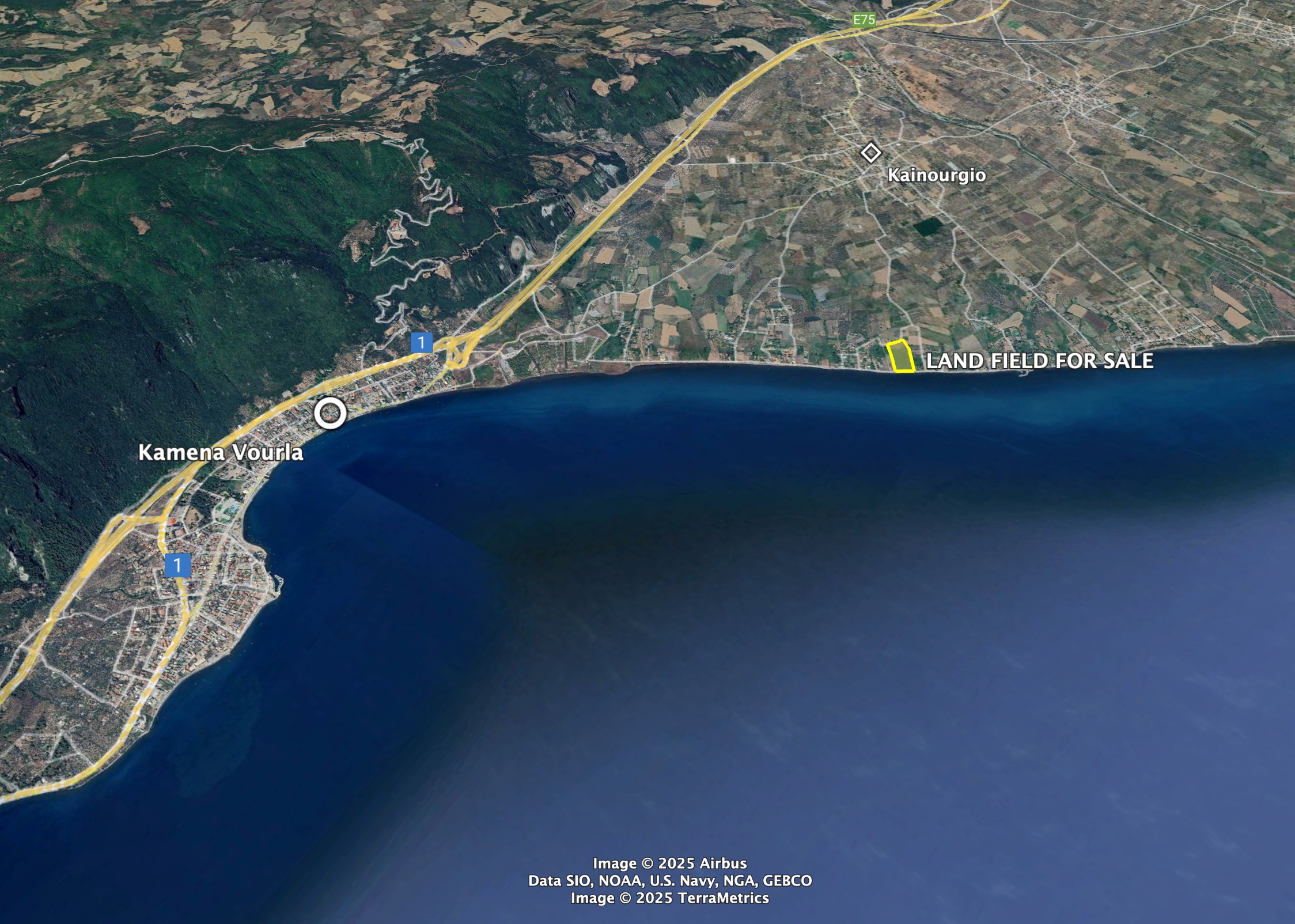 Very Large Coastal Land Field placed in a famous Resort in Greece, European Union.
