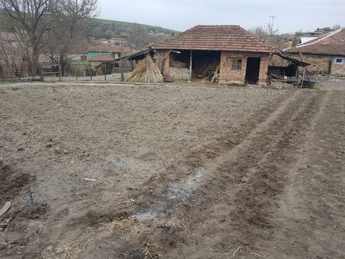 For sale: A 815 m² plot featuring a two-story house (80 m²) and an additional outbuilding (barn). The property is located in the central part of the village, near the former bakery.